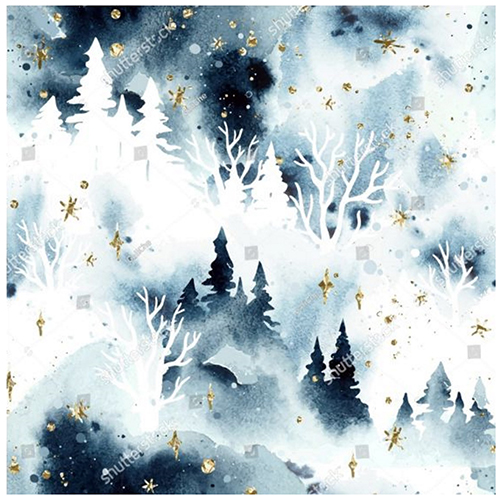 Упаковочная бумага Новогодняя " Миленд " 70*100см 10 листов, Сияние в лесу, в рулоне, 90г/м2