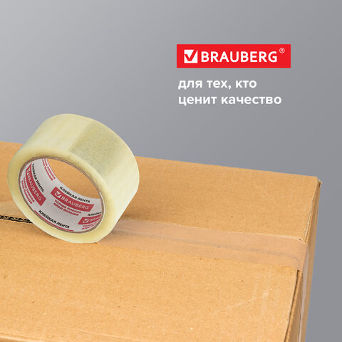 Упаковочная клейкая лента BRAUBERG активно используется в торговле, промышленности, быту и подходит для оперативной упаковки с помощью диспенсера или вручную. Отличается высокой адгезией клея (слипанием с поверхностью) и стойкостью к разрыву.