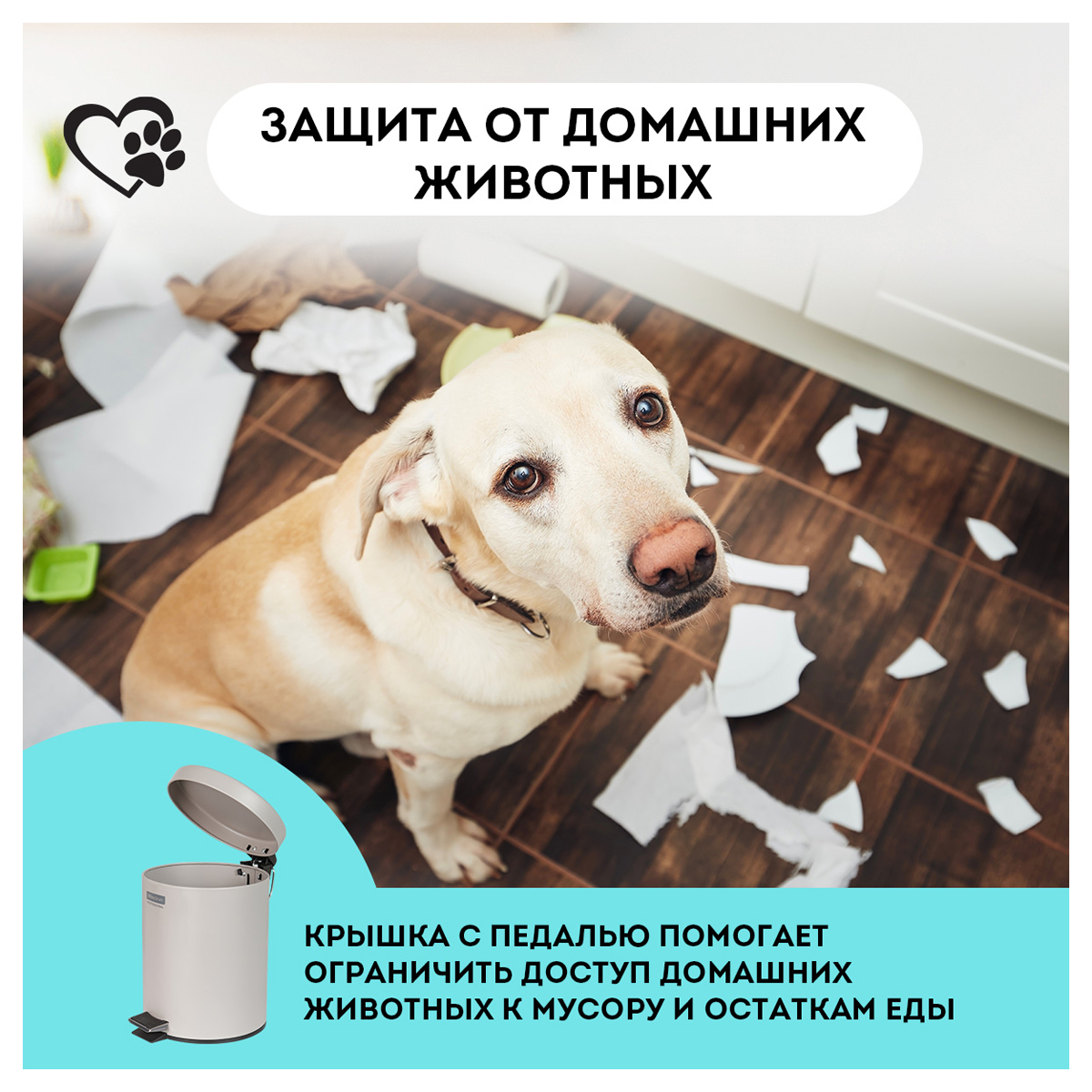Предназначен для сбора бытового мусора. Оснащен педалью с плавным нажатием, плавным доводчиком для закрытия крышки. Внутреннее съёмное пластиковое ведро имеет удобную рукоятку для извлечения. Отвечает всем требованиям гигиены. Рекомендуемый объем мешка 10л.<br/>Причина уценки: механические повреждения упаковки