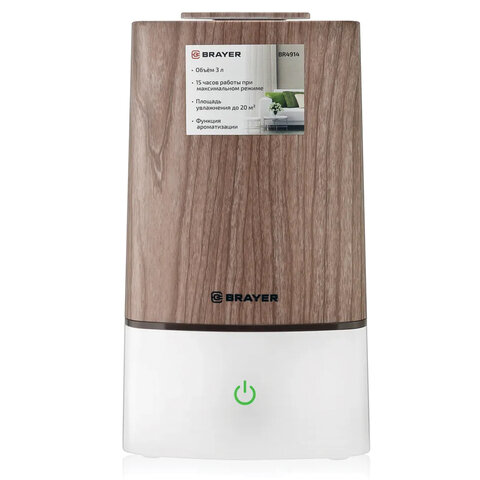 Увлажнитель воздуха BRAYER BR4914, объем бака 3 л, 22 Вт, арома-контейнер, коричневый/белый