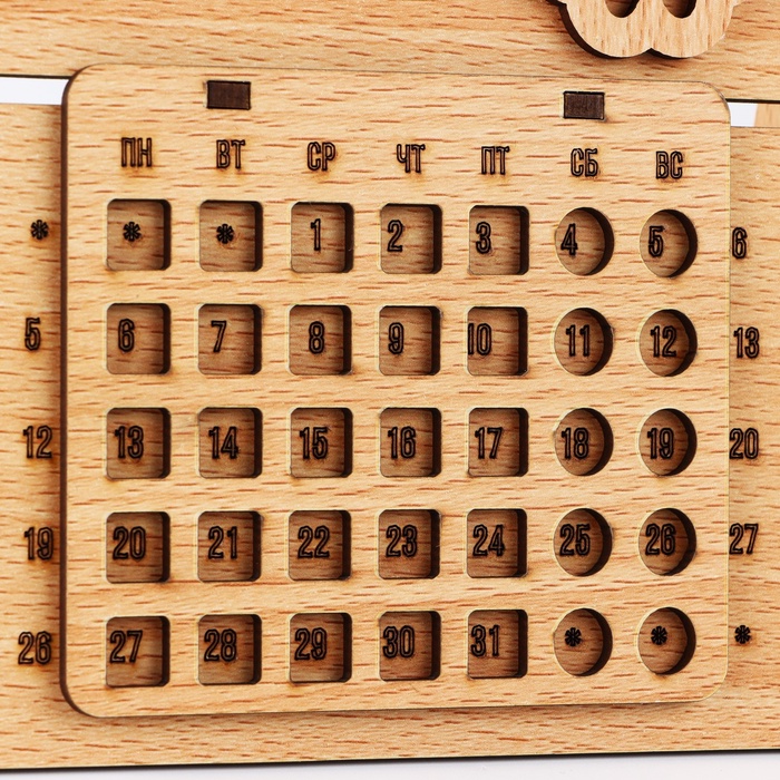 Сувенир вечный календарь с прищепкой, дерево, 6,5х15х20 см