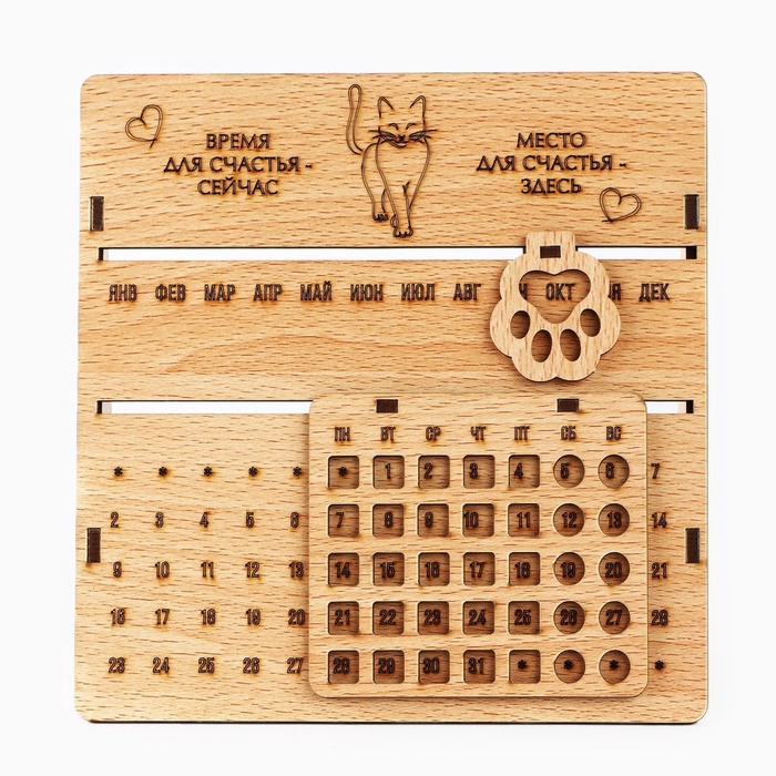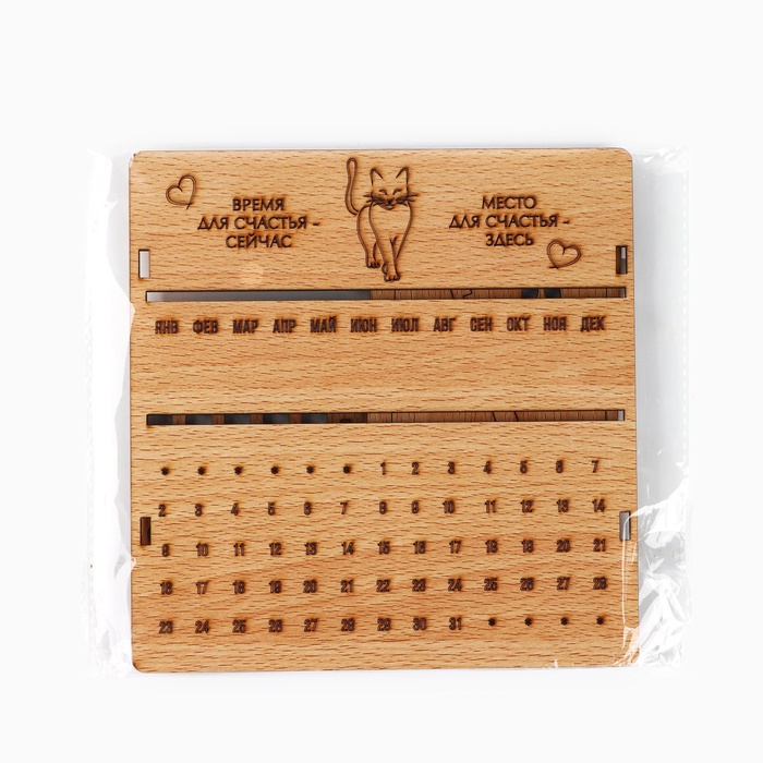 Сувенир вечный календарь, дерево, 4х24х14 см