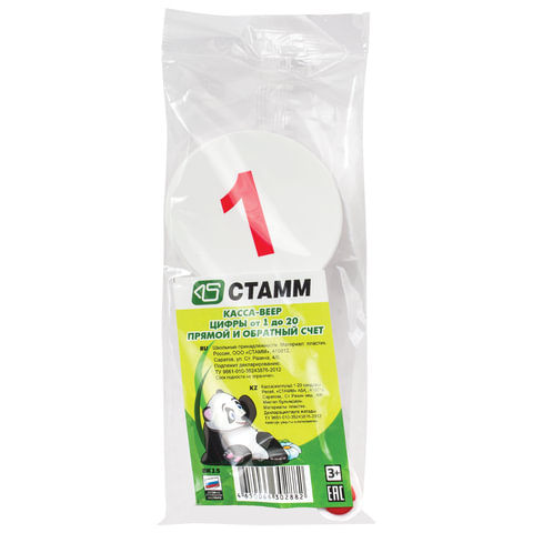 Веер с цифрами от 1 до 20 прямой и обратный. Варианты последовательности: от меньшего к большему и от большего к меньшему. Выполнен из ударопрочного полипропилена, отличается легкостью. Крупный размер и шрифт, качественная печать, устойчивая к истиранию.
