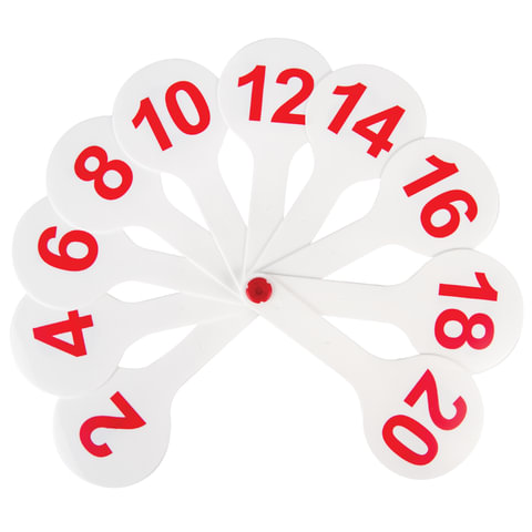 Набор содержит 1 веер с цифрами от 1 до 20. Символы нанесены с двух сторон. Изготовлен из сертифицированного полипропилена. Размер в индивидуальной упаковке- 225х85х17 мм. Поставляется в пакете с европодвесом.