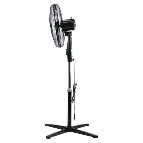 Вентилятор оснащён 3 скоростями работы, что позволяет точно настроить интенсивность обдува под ваши потребности. Регулировка высоты позволяет устанавливать устройство от минимального положения до 1300 мм, а возможность изменения угла наклона моторного блока в вертикальной плоскости помогает направить воздушный поток именно туда, где он нужен больше всего. Также предусмотрен автоматический поворот в горизонтальной плоскости, обеспечивающий равномерное распределение воздуха по комнате.
