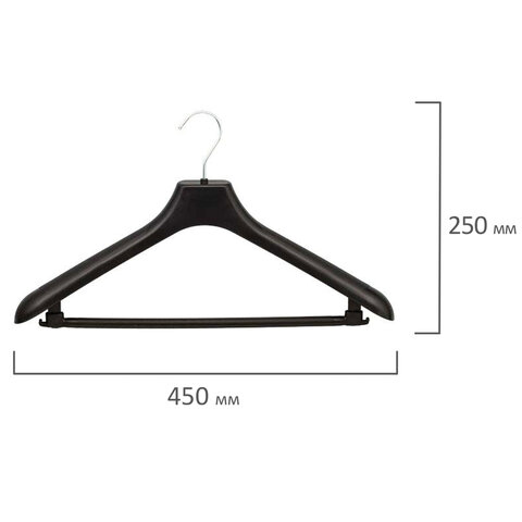 Вешалки-плечики для одежды, размер 48-50, металл, антискользящие, КОМПЛЕКТ 10 шт., черные, BRABIX PREMIUM, 608467
