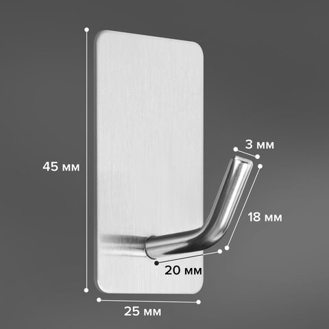 Крючки самоклеящиеся 5х5 см для ванной комнаты, кухни, КОМПЛЕКТ 2 шт., нержавеющая сталь, LAIMA Home, 608798
