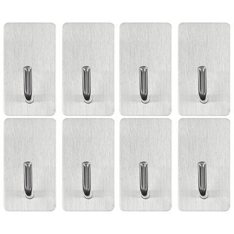 Комплект – 8 штук. Цвет – серебристый. Размер основания крючка – 2,5 x 4,5 см. Выдерживает вес до 15 кг.