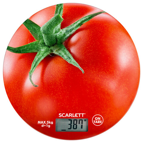 Весы кухонные SCARLETT SC-KS57P38 "Помидор", электронный дисплей, max вес 5 кг, тарокомпенсация, стекло
