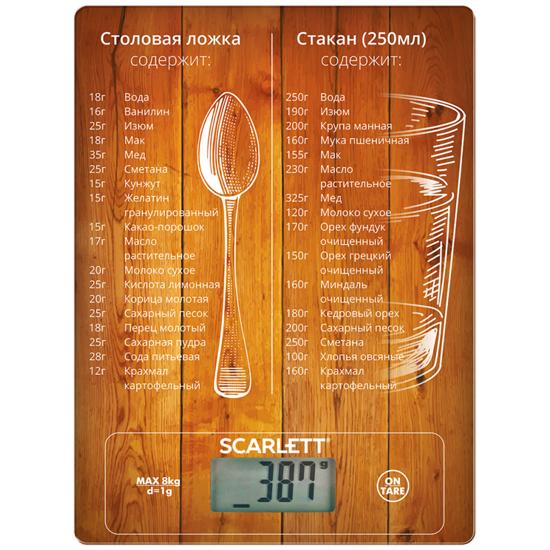 Кухонные весы Scarlett SC-KS57P34, стекло, пластик, 8кг макс