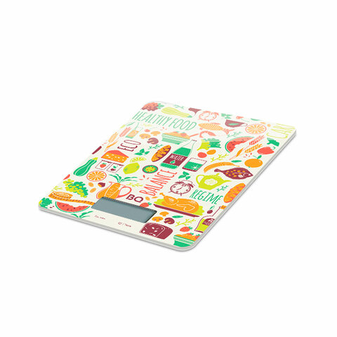 Весы кухонные BQ (БИ-КЬЮ) KS1010, электронный дисплей, max вес 5кг, тарокомпенсация, закаленное стекло, с рисунком, 86191803