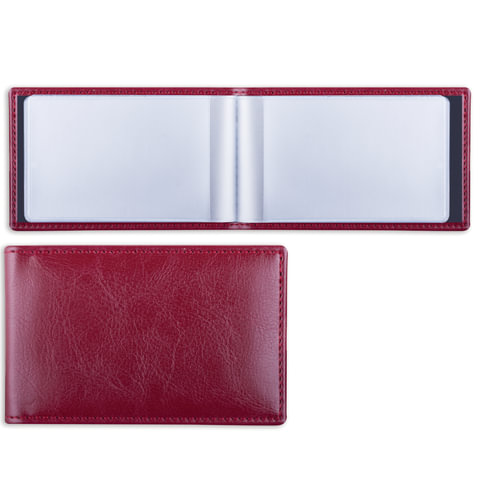 Визитница однорядная BRAUBERG "Imperial", на 20 визиток, под гладкую кожу, бордовая, 231652