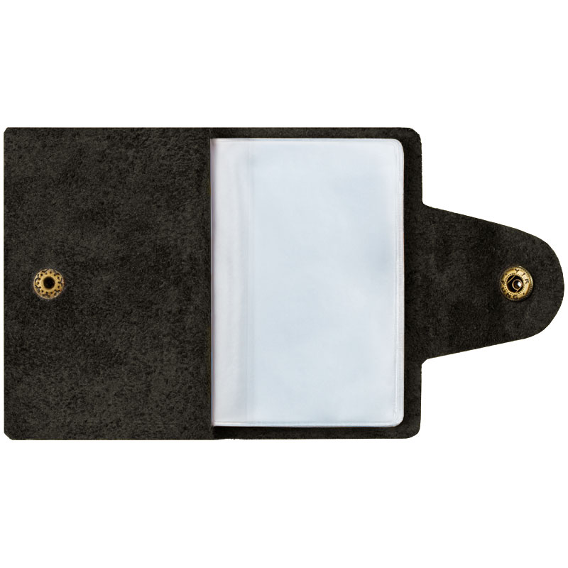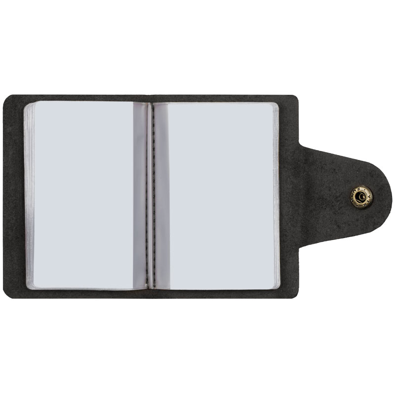 Визитница карманная OfficeSpace на кнопке выполнена из натуральной мягкой кожи черного цвета. Внутри изделия удобные прозрачные пластиковые файлы, рассчитанные на 36 визиток или 18 карт. Визитница - удобный аксессуар, позволяющий держать в одном месте все карты и визитки. Компактный аксессуар легко поместится в любой сумочке, рюкзаке.