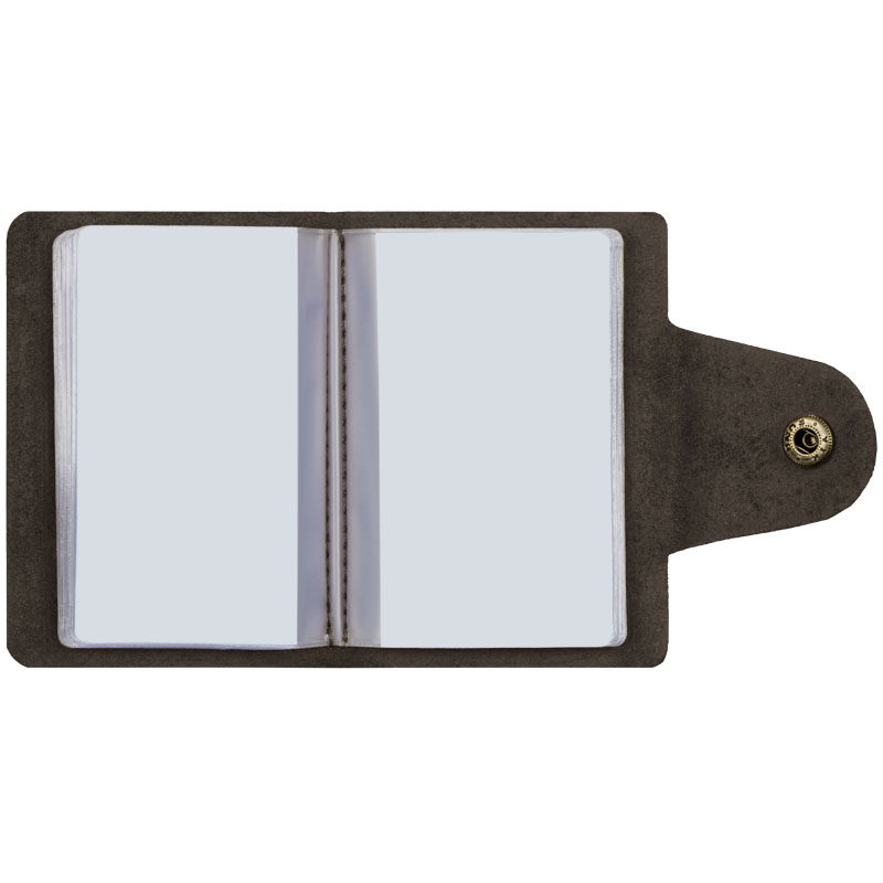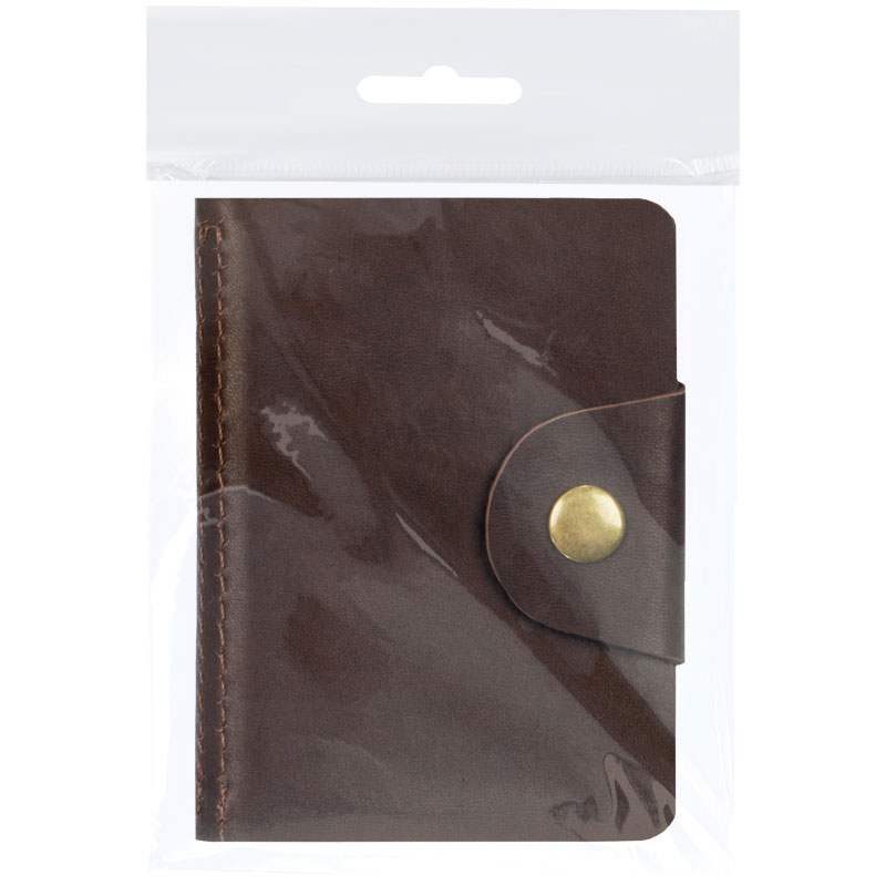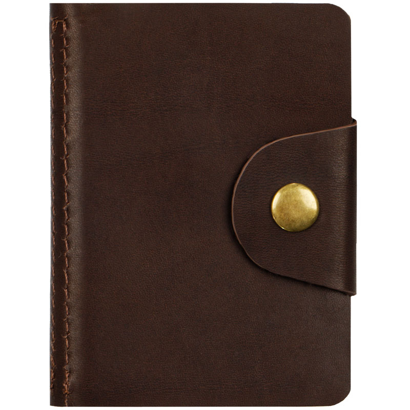 Визитница карманная OfficeSpace на кнопке выполнена из натуральной мягкой кожи темно коричневого цвета. Внутри изделия удобные прозрачные пластиковые файлы, рассчитанные на 36 визиток или 18 карт. Визитница - удобный аксессуар, позволяющий держать в одном месте все карты и визитки. Компактный аксессуар легко поместится в любой сумочке, рюкзаке.