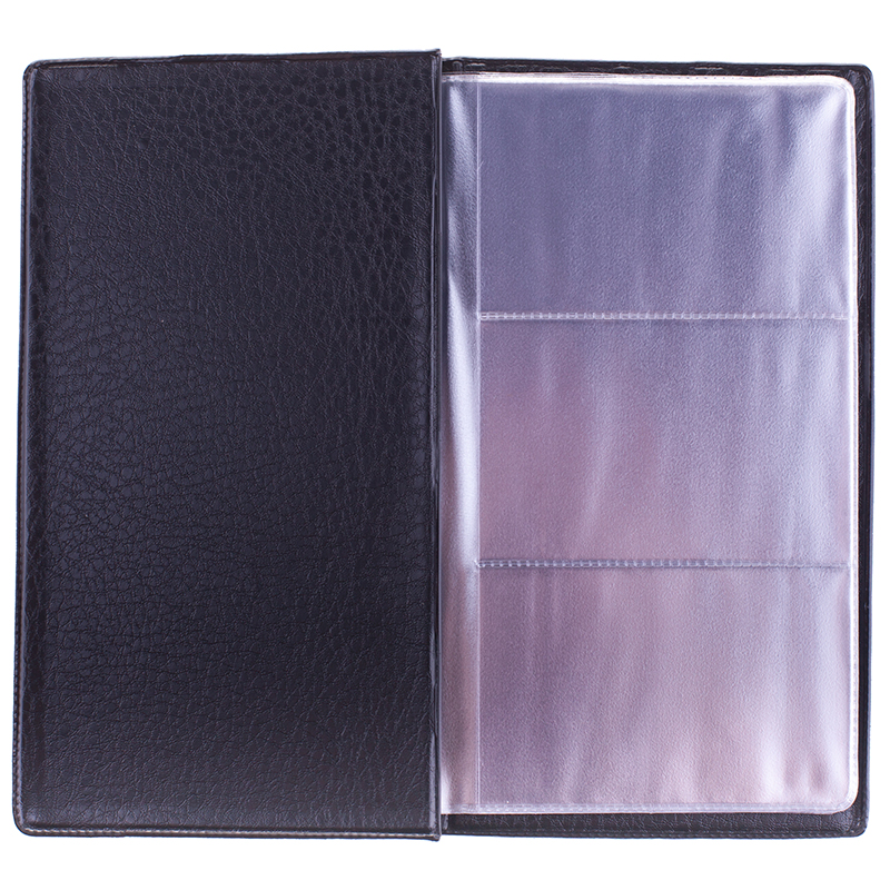 Визитница<br/>Материал - ПВХ<br/>Материал клапана - ПВХ<br/>Материал внутреннего блока - ПВХ<br/>Тип скрепления - термосварка<br/>Цвет - черный<br/>Упаковка - пакет<br/>Противокражная защита - нет