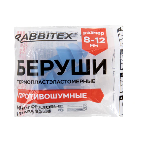 Беруши многоразовые силиконовые без шнурка, 1 пара в пакете, SNR 37 дБ, RABBITEX (РАББИТЕКС), 671314