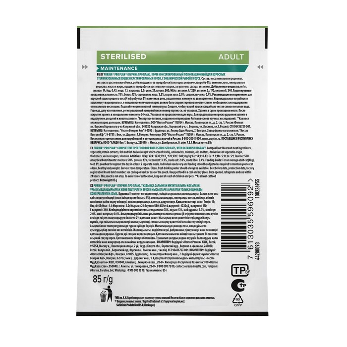 Влажный корм Perfect Fit для чувствительных кошек, телятина, 75 г
