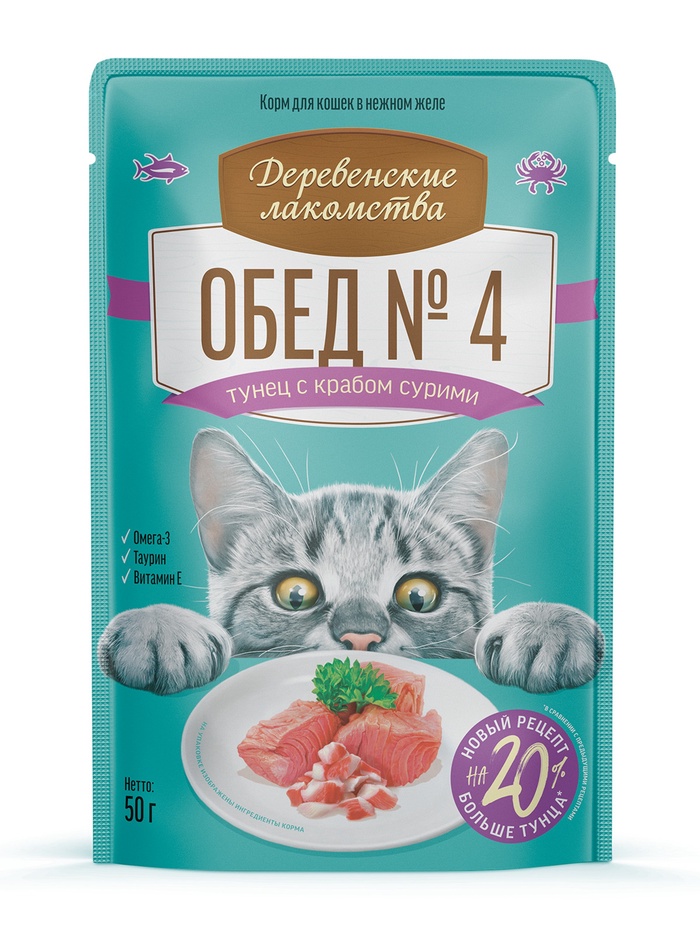 Влажный корм для кошек "Деревенские Лакомства" Тунец с крабом сурими, пауч, 50 г