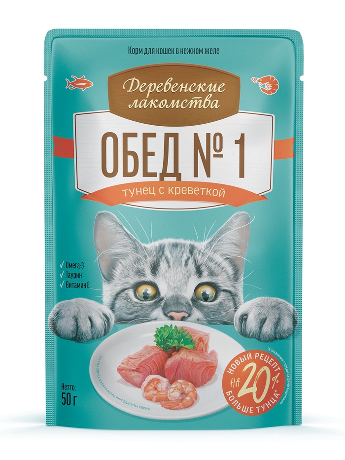 Влажный корм для кошек "Деревенские Лакомства" Тунец с креветкой, пауч, 50 г