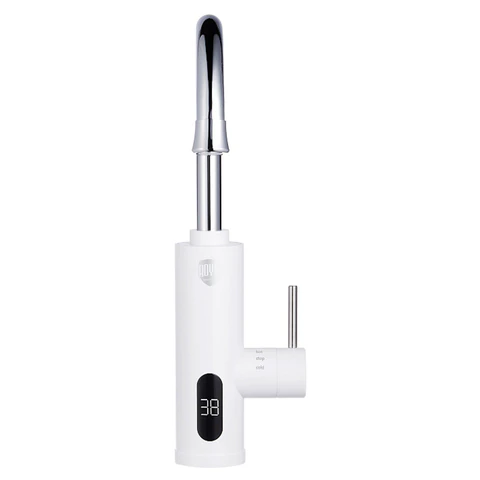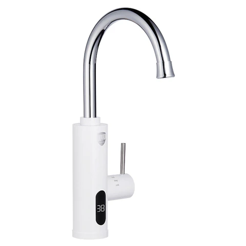 Этот стильный белый кран с мощностью 3,3 кВт обеспечивает подачу воды со скоростью 1,48 л/мин при температуре до 60°C, избавляя от ожидания и сложных установок. Благодаря миниатюрным размерам (23,5 х 11,5 х 38 см) и металло-пластиковому корпусу, он органично впишется в интерьер кухни или ванной, а LED-дисплей в реальном времени информирует о состоянии нагрева.