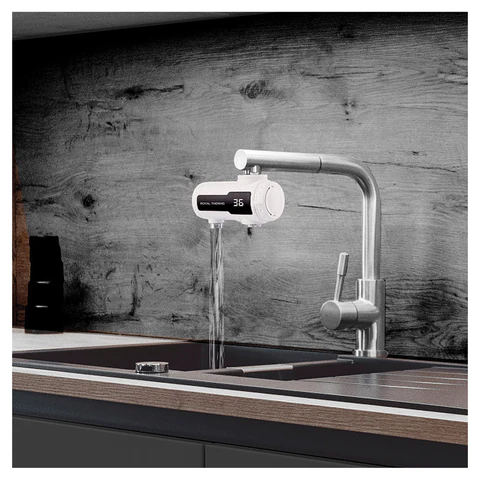 Модель оснащена цифровым дисплеем с точностью отображения температуры до 1°C, механическим управлением и двумя уровнями защиты: автоматическим отключением при перегреве и отсутствии воды. Класс пылевлагозащиты IPX4 гарантирует безопасность в условиях повышенной влажности. Установка занимает минуты — в комплекте идут все необходимые переходники для подключения к стандартному смесителю. Подключение к сети 220–240 В через кабель с вилкой (сечение 2,5 мм2), рабочее давление — от 0,4 до 6 бар. Вес устройства — 0,9 кг.