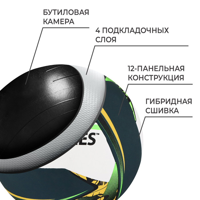 Мяч волейбольный, р.5 (18 панелей, PVC вспен. 2,7, камера PVC), цвет зеленый