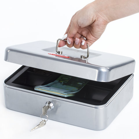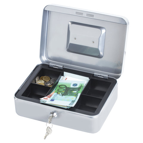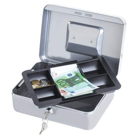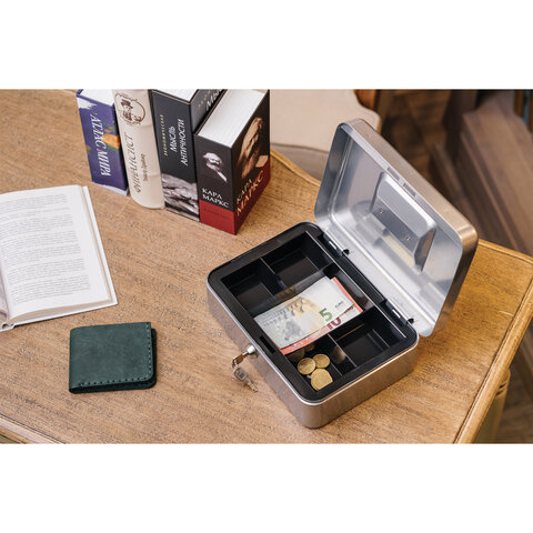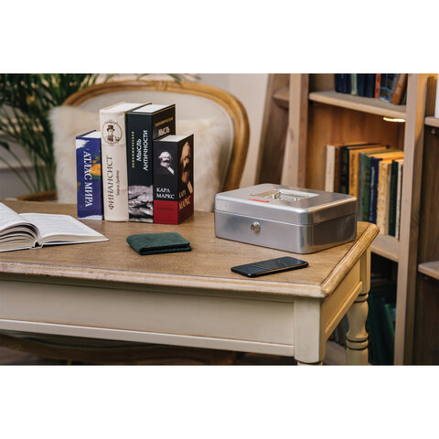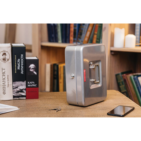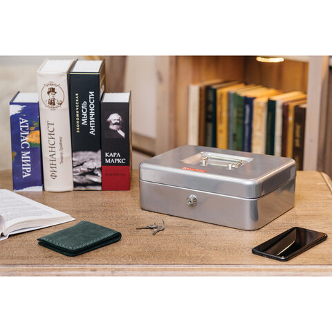 Ящик для денег, ценностей, документов, печатей, 90х240х300 мм, ключевой замок, серебристый, BRAUBERG, 291060