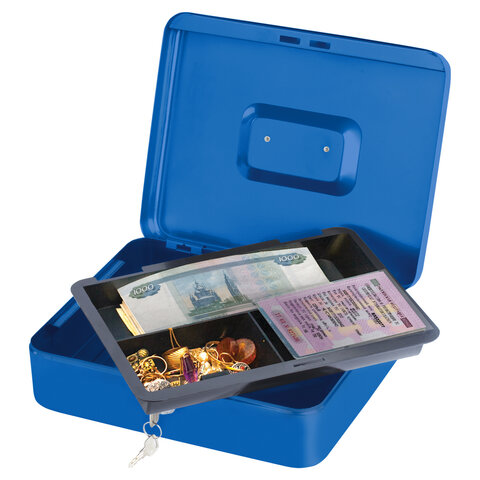 Ящик для денег, ценностей, документов, печатей, 90х240х300 мм, ключевой замок, синий, BRAUBERG, 290336
