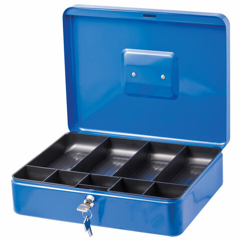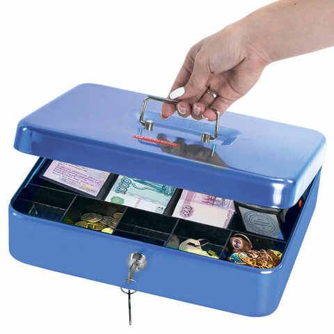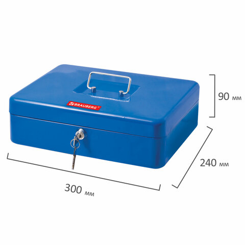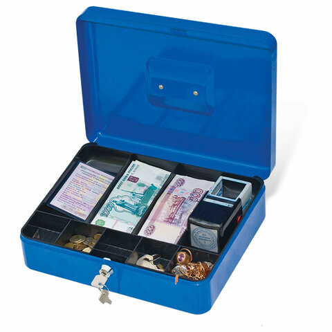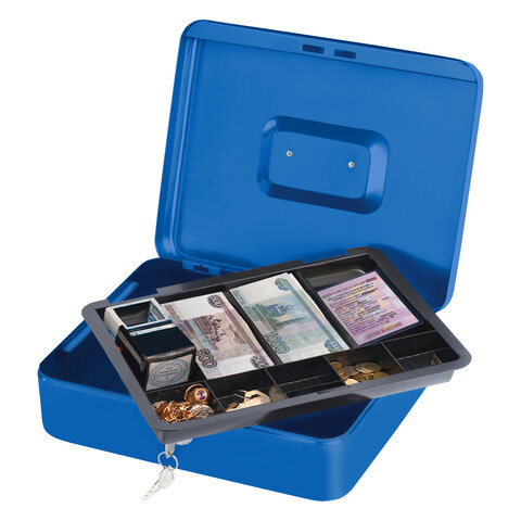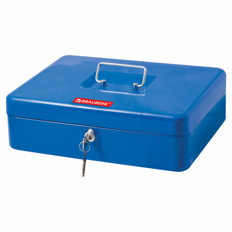 Ящик для денег, ценностей, документов, печатей, 90х180х250 мм, ключевой замок, синий, BRAUBERG, 290335
