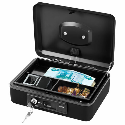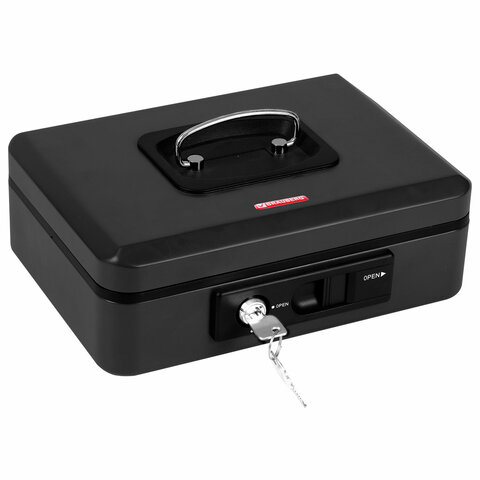 Ящик для денег, ценностей, документов, печатей, 90х180х250 мм, ключевой замок, черный, BRAUBERG, 291349