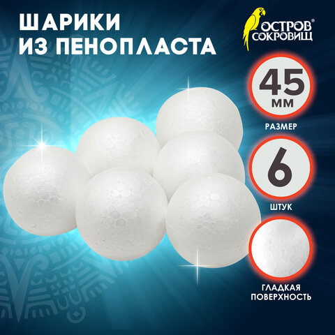 Пенопластовые заготовки для творчества "Шарики", 6 шт., 45 мм, ОСТРОВ СОКРОВИЩ, 661343