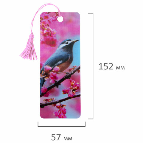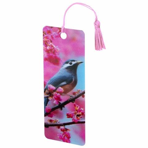 Закладка для книг 3D, BRAUBERG, объемная, "Птичка на ветке", с декоративным шнурком-завязкой, 125773
