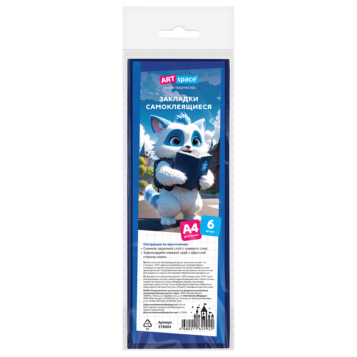 Закладки самоклеящиеся для книг формата А4 (ляссе с клеевым краем), ПВХ, 6 штук, ArtSpace, индиго синий