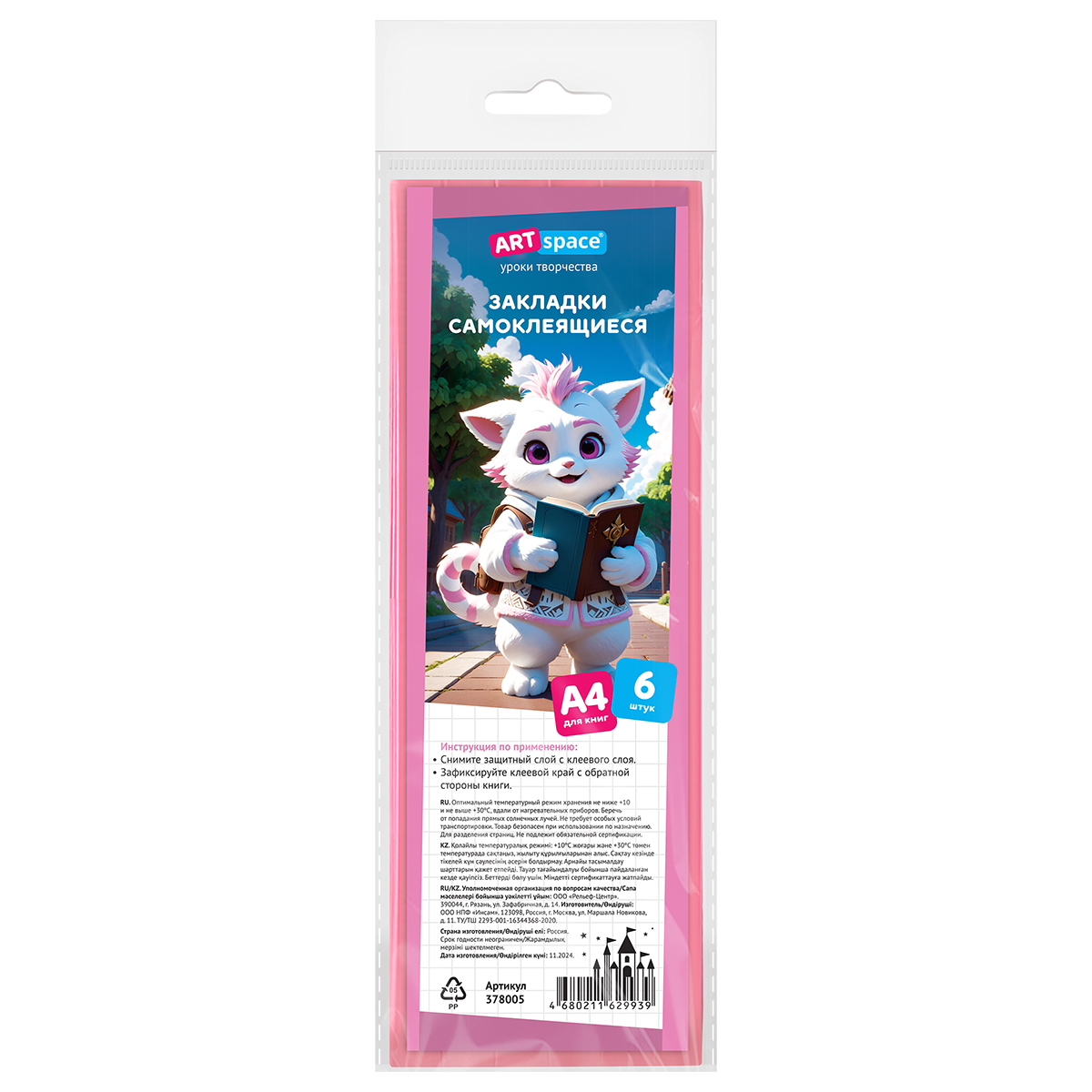 Закладки самоклеящиеся для книг формата А4 (ляссе с клеевым краем), ПВХ, 6 штук, ArtSpace, розовый флокс