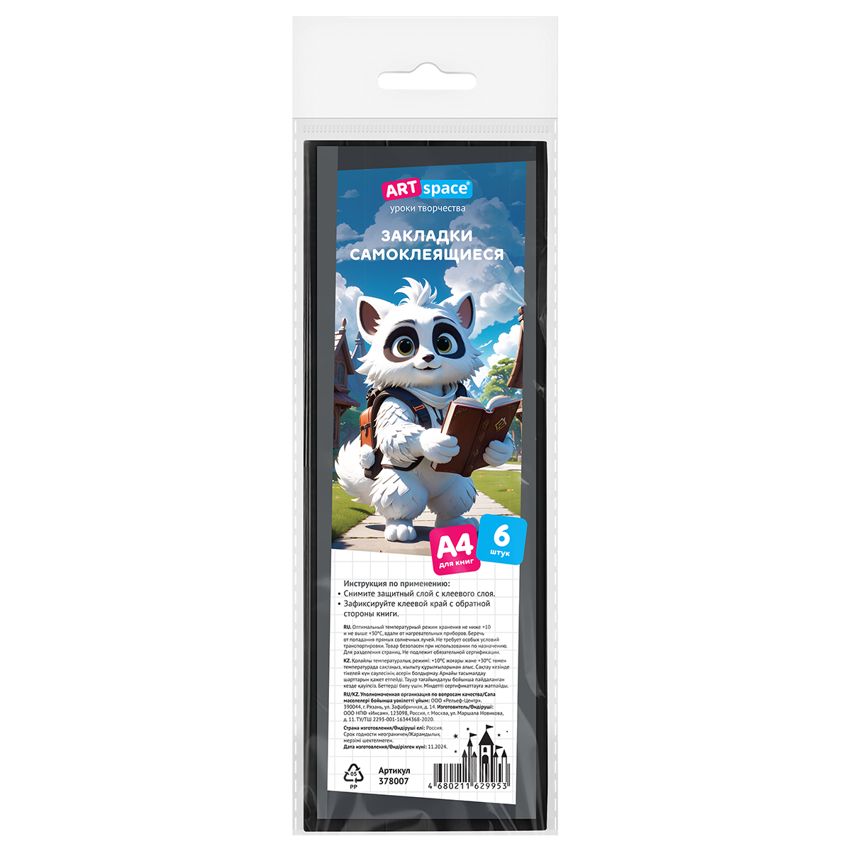 Закладки самоклеящиеся для книг формата А4 (ляссе с клеевым краем), ПВХ, 6 штук, ArtSpace, графит