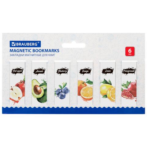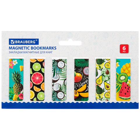 Закладки для книг МАГНИТНЫЕ, "PASTEL", набор 6 штук, 60x20 мм, BRAUBERG, 117013