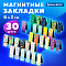 Закладки выполнены из картона и винила, надежно крепятся на листе благодаря магнитной полосе. Позволяют быстро найти нужную страницу. Удобны в применении и даже спустя большое количество времени будут выглядеть аккуратно. Размер закладки - 20х60 мм. В наборе 30 штук.