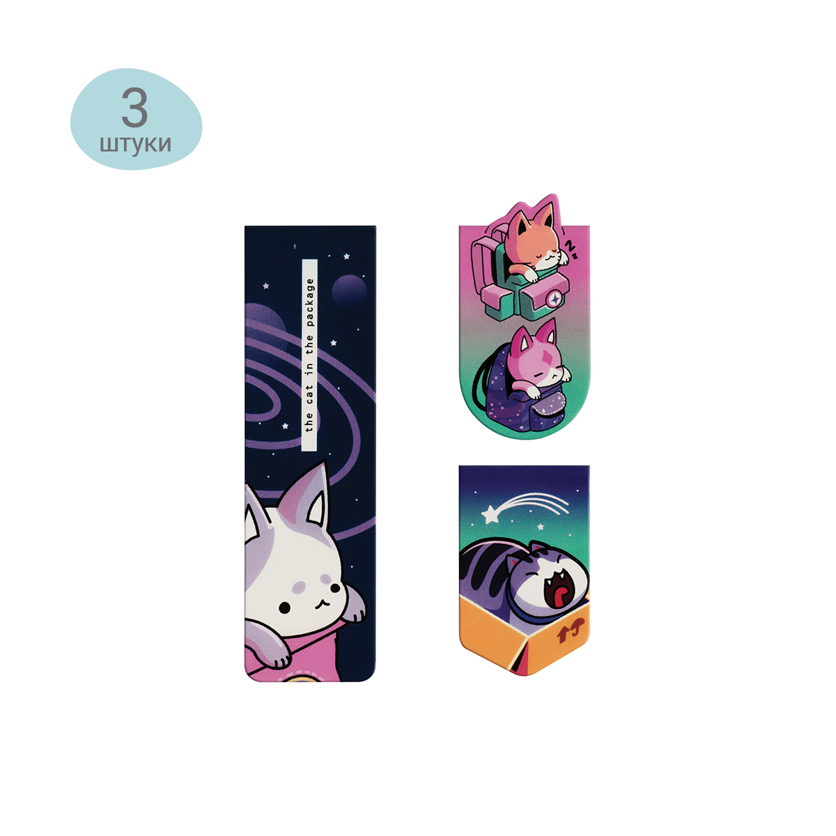 Полностью магнитное основание позволит крепко зафиксировать закладку в нужном месте. В наборе 3 закладки разных форм и размеров в милых современных дизайнах. Это сделает процесс чтения или учебы еще более увлекательным. Набор упакован в пакет.