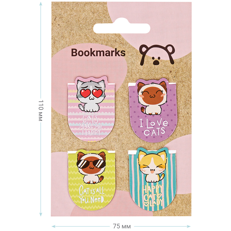 Закладки для книг МАГНИТНЫЕ, BRAUBERG "CUTE CATS", набор 6 штук, 60x20 мм, 116985