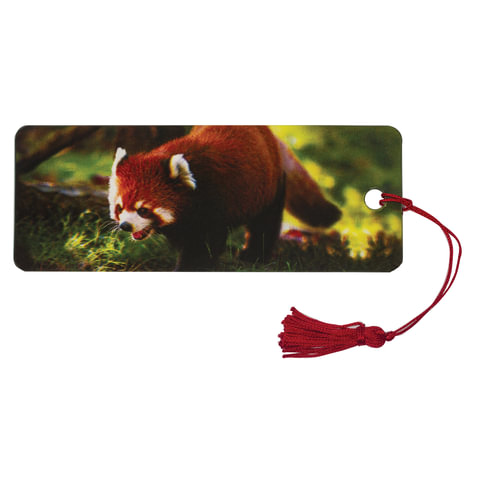 Закладка для книг с линейкой, 3D-объемная, BRAUBERG "Красная панда", с декоративным шнурком, 128103