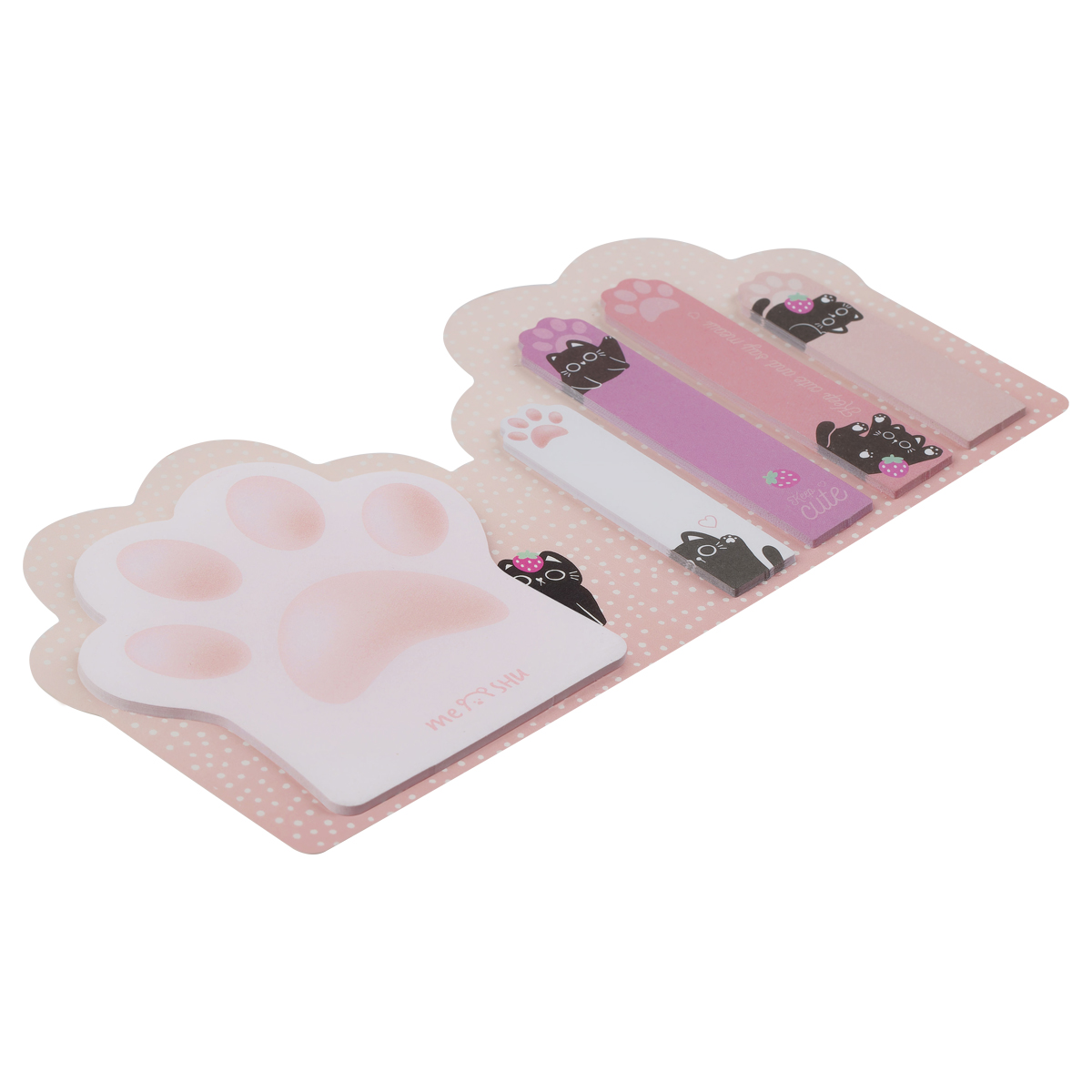 В набор MESHU "Keep Cute" входят флажки-закладки и самоклеящиеся блоки. Флажки понадобятся, чтобы сделать акцент на важных записях в тетради или отметить нужную страницу книги. Самоклеящиеся блоки помогут записывать повседневные и рабочие задачи, фиксировать идеи и оставлять напоминания.