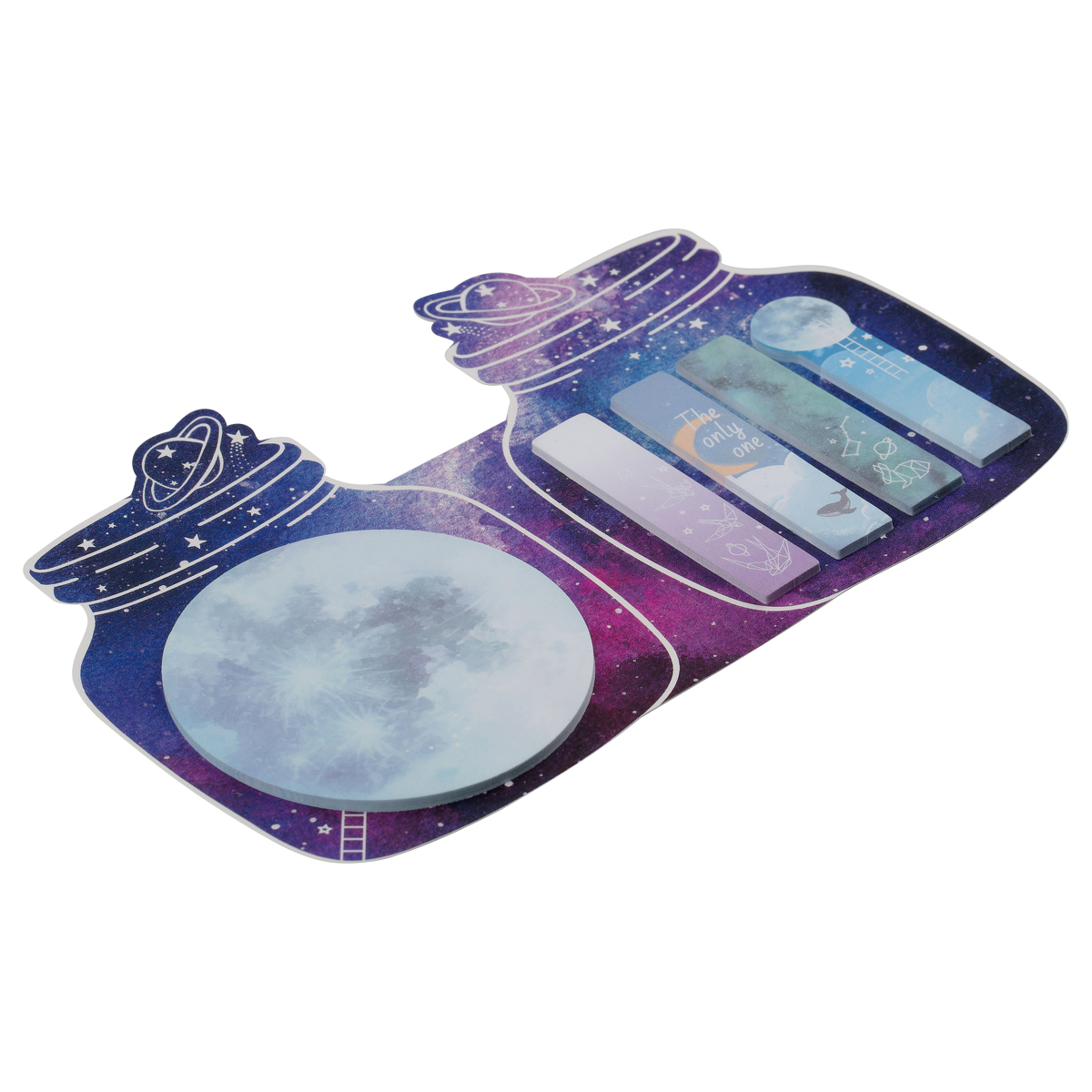 В набор MESHU "Universe" входят флажки-закладки и самоклеящиеся блоки. Флажки понадобятся, чтобы сделать акцент на важных записях в тетради или отметить нужную страницу книги. Самоклеящиеся блоки помогут записывать повседневные и рабочие задачи, фиксировать идеи и оставлять напоминания. Бумажные фигурные стикеры с милым дизайном также позволят оформить тематические страницы в ежедневнике. Клеевой слой не оставляет следов на поверхностях. Листы можно использовать многократно.<br/>Набор размещён на подложке с европодвесом. Индивидуальная упаковка — пакет.