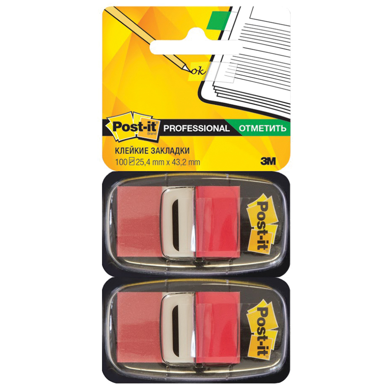 Клейкие закладки Post-it Professional помогут выделить и отметить нужную информацию, организовать цветное кодирование страниц и разделов. Уникальная клеевая система Post-it с оптимальной для документов клейкостью (33 Н/м) - закладки отлично держатся бумаге любого типа, при отклеивании не оставляют следов клея, допускают многократное переклеивание. Основа из прочного и износостойкого полиэстера со специальным покрытием толщиной 63 мкм - закладки долго сохраняют форму и цвет. На поверхности закладки можно делать надпись любыми пишущими принадлежностями. Красный. Формат ширина 25 мм. , в упаковке 2 контейнера по 50 закладок в каждом.Особых условий хранения не требует, сертификации не подлежит, срок годности не ограничен.