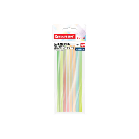 Закладки клейкие выделители текста BRAUBERG ULTRA PASTEL COLOR, 135х5мм, 160 штук (8 цветов х 20 листов), 116686