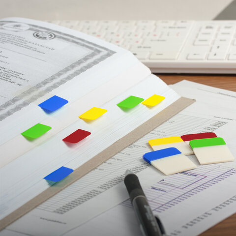Яркие пластиковые полупрозрачные закладки BRAUBERG акцентируют внимание на важных страницах книги, журнала, каталога и др.