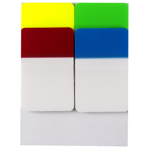 Набор белых пластиковых закладок-выделителей размером 38х25 мм с цветными краями 4 неоновых цветов состоит из 80 листов, по 20 закладок каждого цвета. Клейкий слой - 22 Н/м. Легко клеятся к любой поверхности и не оставляют следов. Материал закладок позволяет делать надписи ручкой и карандашом. Поставляются в полиэтиленовом пакете с европодвесом.