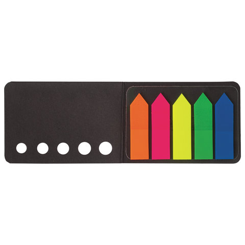 Набор пластиковых закладок 5 неоновых цветов размером 42х12 мм состоит из 100 листов, по 20 закладок каждого цвета. Клейкий слой - 22 Н/м. Легко клеятся к любой поверхности и не оставляют следов. Материал закладок позволяет делать надписи ручкой и карандашом. Уложены в картонной книжке. Поставляются в полиэтиленовом пакете с европодвесом.
