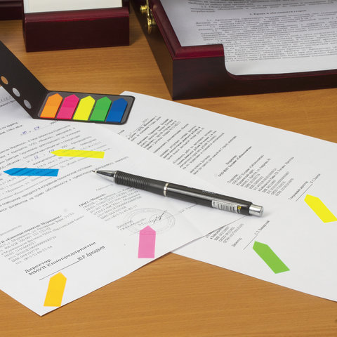 Яркие пластиковые полупрозрачные закладки BRAUBERG акцентируют внимание на важных страницах книги, журнала, каталога и др.