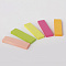 Набор бумажных закладок 5 неоновых цветов размером 50х14 мм состоит из 250 листов, по 50 закладок каждого цвета. Клейкий слой - 22 Н/м. Легко клеятся к любой поверхности и не оставляют следов. Материал закладок позволяет делать надписи ручкой и карандашом. Поставляются в полиэтиленовом пакете с европодвесом.