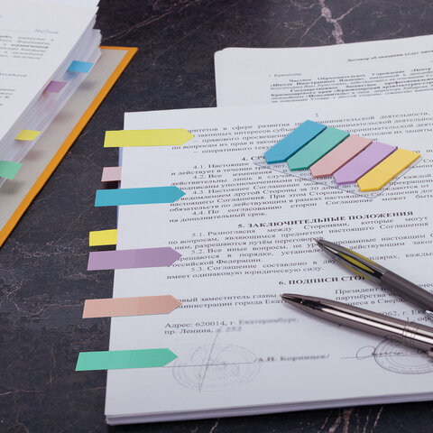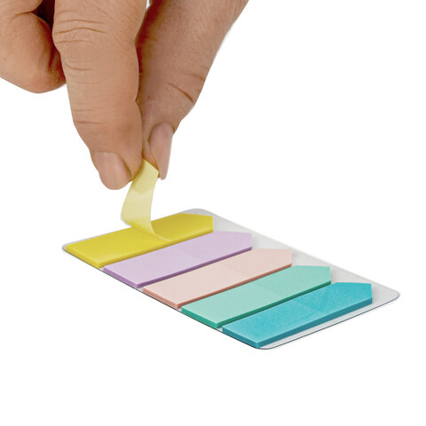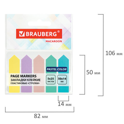 Яркие пластиковые полупрозрачные закладки пастельных тонов BRAUBERG MACAROON в форме стрелок акцентируют внимание на важных страницах книги, журнала, каталога и др.